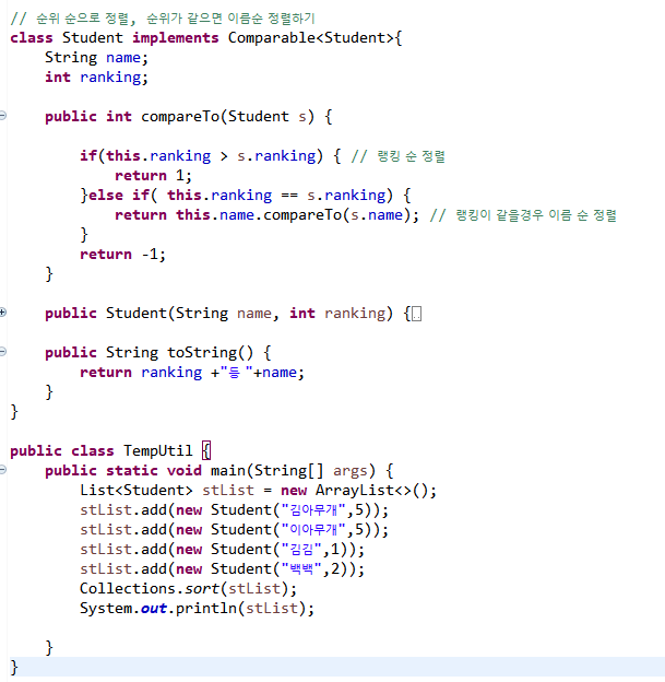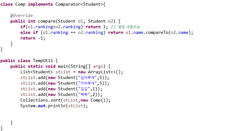 Comparator는 다른 기준으로 정렬하고 싶을시에 사용합니다.
