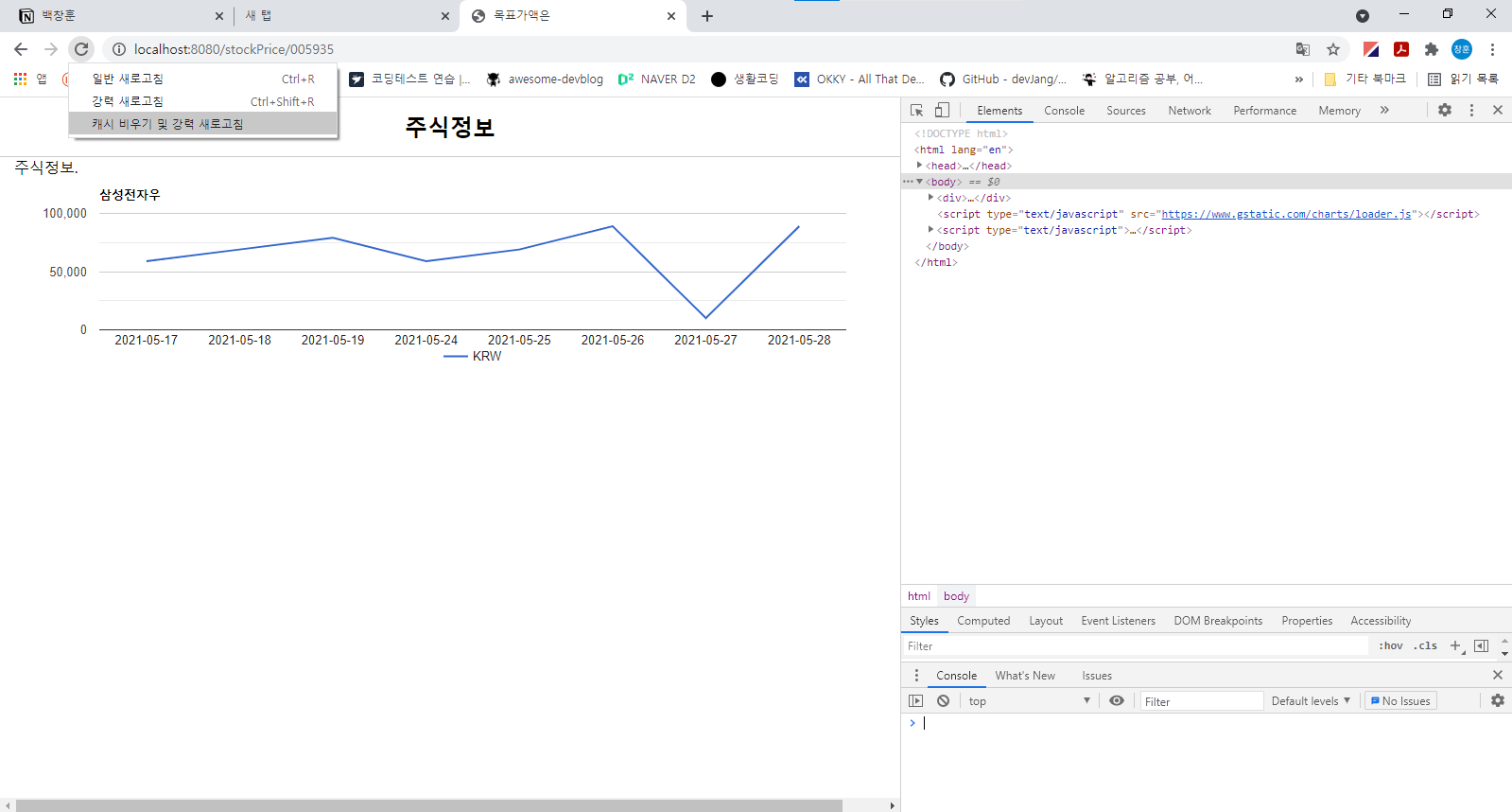 여기까지 하고도 안된다면, chrome에서는 캐시비우기 및 강력 새로고침 이라는 기능을 사용하면 된다.