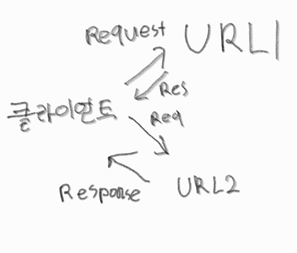 - 해당 과정에서 클라이언트의 요청 URL이 바뀌고 새로운 Request객체와 Response객체를 생성합니다.